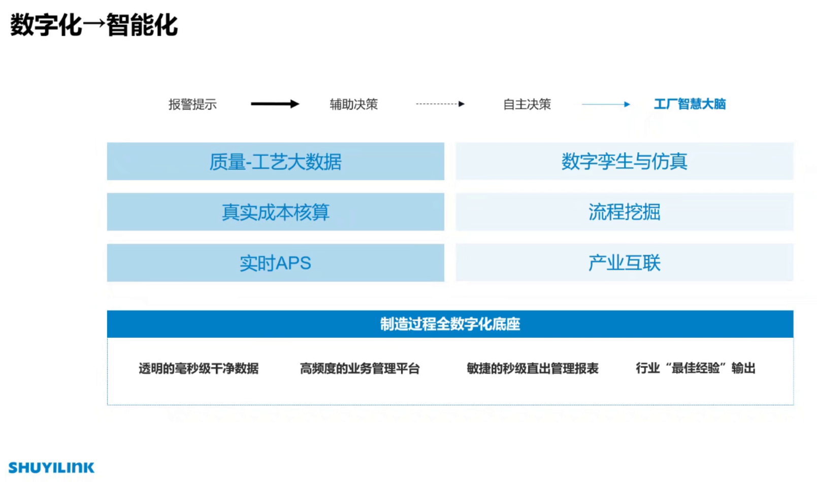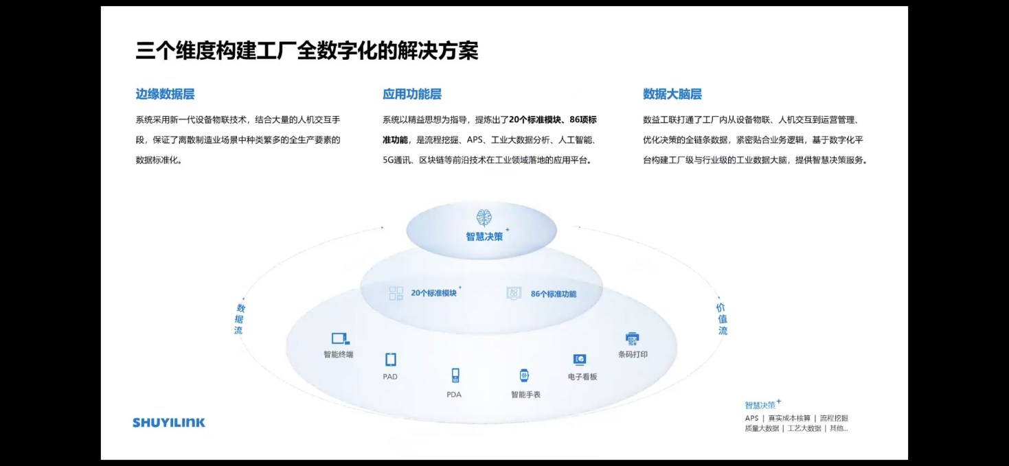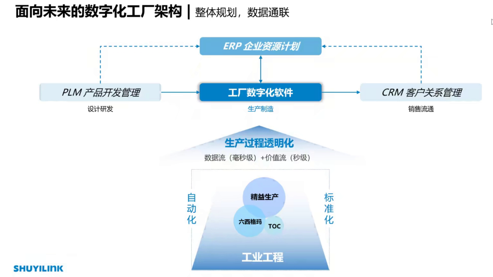 何盛华指出,在数字化时代,中国制造业也正朝着数字化转型升级。通过打造基于数据流+价值流的离散制造业数字化软件,为离散制造业数字化转型升级提供从规划到实施落地的端到端工厂级解决方案。