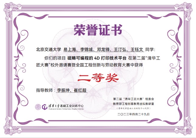 近日,由教育部工程创客教育虚拟教研室和清华大学主办的全国工程创新与劳动教育大赛暨第二届“清华工匠大赛”校外邀请赛圆满落幕。经过激烈角逐,我校学生获二等奖2项,三等奖2项,并获得“优秀团队组织奖”,展现了我校在工程创客教育及劳动创新方面的卓越成果。