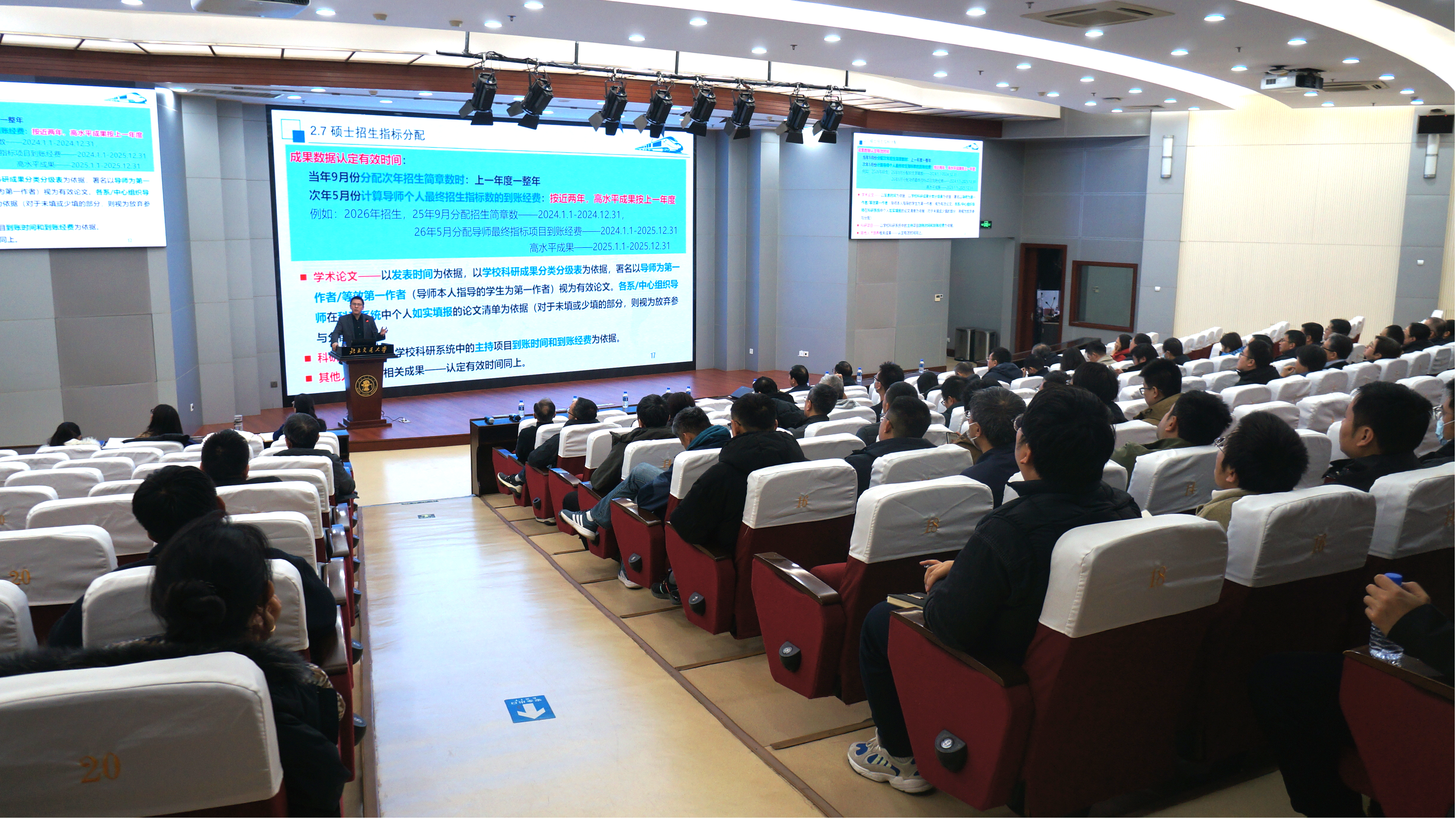 为进一步加强研究生导师队伍建设、压实导师立德树人核心职责,帮助导师精准把握研究生教育最新政策要求,深化师德师风建设成效,12月1日,机电学院组织召开2025年全体研究生导师培训会。学院100余名研究生导师参会,会议由研究生科科长田龙梅主持。