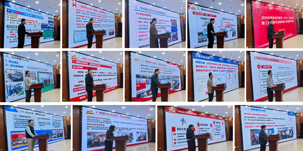 各系(中心)主任围绕人才培养、科学研究、专业建设等方面汇报了2025年度工作开展情况和2026年度重点工作思路、举措。各党支部书记针对党支部标准化规范化建设、增强政治功能和组织功能、围绕中心工作抓党建等进行述职,详细汇报了过去一年深入贯彻中央八项规定精神学习教育、组织活动开展、师德师风建设、课程思政建设和品牌创建等方面的具体做法,并提出下一年度工作思路。