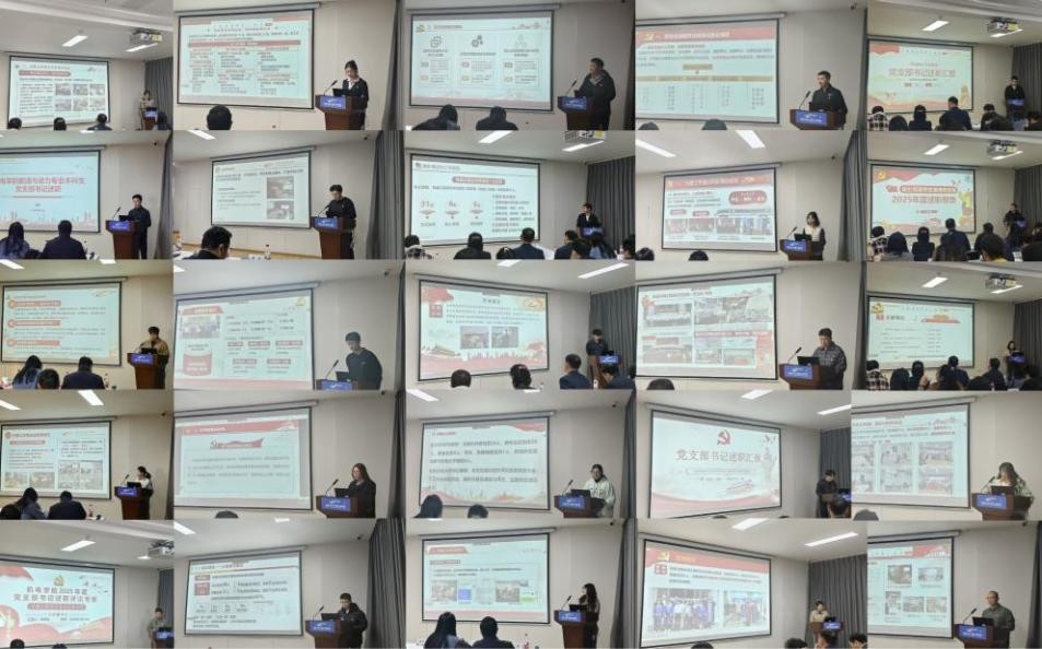 5名本科生党支部书记和21名研究生党支部书记围绕支部组织生活开展、标准化规范化建设、战斗堡垒和党员先锋模范作用发挥等方面系统地对2025年支部书记抓党建工作开展情况、主要做法、存在问题以及下一步工作思路进行了述职。与会人员对党支部书记的履职情况进行了现场测评。